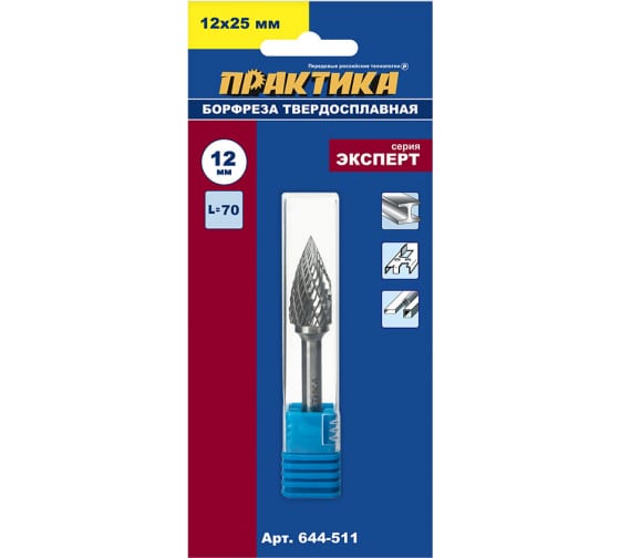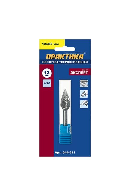 Борфреза твердосплавная ПРАКТИКА 12*25 мм, хвостовик 6 мм, тип G, параболическая заостренная