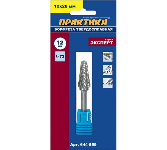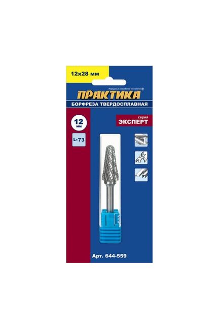 Борфреза твердосплавная ПРАКТИКА 12*28 мм, хвостовик 6 мм, тип L, коническая с закруглением