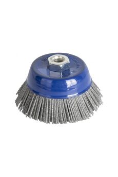 Кордщетка чашеобразная нейлоновая с хвостовиком. Серия "Профи". Кордщетка для дрели. Хвостовик 6 мм для закрепления в патроне. Нейлоновый абразивный материал идельно подходит для удаления лака, матирования, структурирования древесины, тонкой шлифовки металов. Хорошо подходит для тонких листов не допуская их повреждения. Мягкая чашеобразная кордщетка 75 мм для дрели: бережная очистка металла, снятие ржавчины и краски. Эффективна, износостойка, легко устанавливается.