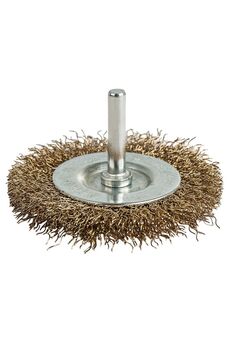 материал проволоки - латунированная сталь, форма проволоки волнистая, диаметр - 16 мм, хвостовик - 6 мм Мягкая кистеобразная кордщетка 16 мм для деликатной обработки металла, удаления ржавчины и зачистки труднодоступных мест, хвостовик 6 мм.