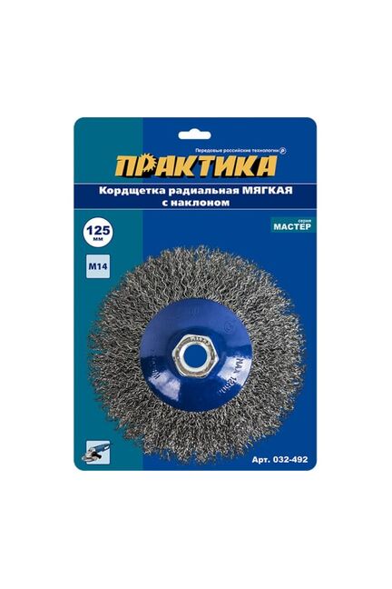 Кордщетка для УШМ ПРАКТИКА, радиальная мягкая с наклоном 125 мм М14