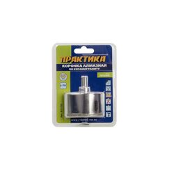 Коронки алмазные по стеклу, керамике. Серии "Сделай Сам" и "Мастер". Коронка алмазная (сверло трубчатое) предназначена для сверления изделий из керамики, стекла. Ограниченно подходит для сверления керамогранита. Рекомендуется работать с помощью направляющего кондуктора. Запрещено работать в ударном режиме и без охлаждения водой. Необходимо ограничивать скорость подачи и частоту оборотов во избежание перегрева коронки. Использовать охлаждение водой. Рекомендуемая частота оборотов от 150 до 800 об/мин в зависимости от диаметра. Для аккуратного сверления стекла и керамики, диаметр 68 мм, алмазное напыление, долговечность, подходит для розеток и подрозетников.