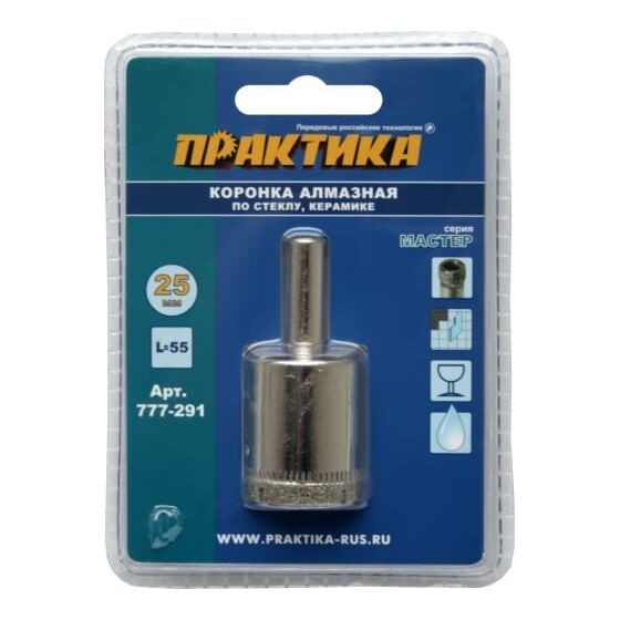 Коронка алмазная по стеклу и керамике ПРАКТИКА "Мастер" 25 мм