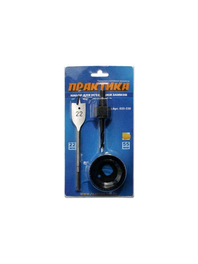 Этот набор для установки замков идеально подходит для быстрого и точного сверления отверстий под замки в деревянных, ДСП и MDF дверях. Мощная коронка диаметром 55×20 мм и перовое сверло на 22 мм обеспечивают чистый срез без сколов, делая работу аккуратной и надежной.
