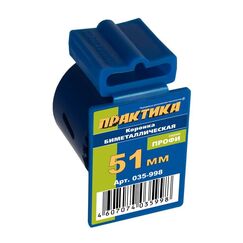 Коронки биметалические. Серия "Профи". Предназначены для сверления сквозных отверстий большого диаметра в листовом металле, пластике, ДСП, дереве, гипсокартоне. Используются при установке сантехнических и вентиляционных труб, проводке коммуникаций, монтаже розеток и выключателей, установке замков в деревянные и металлические двери. Обеспечивают высокую скорость сверления и ресурс. Режущие зубья изготовлены из быстрорежущей стали легированной кобальтом. Биметаллическая прочная коронка 51 мм с клипсой — для сверления металла, дерева и пластика. Быстрая смена, чистый срез, универсальность применения.