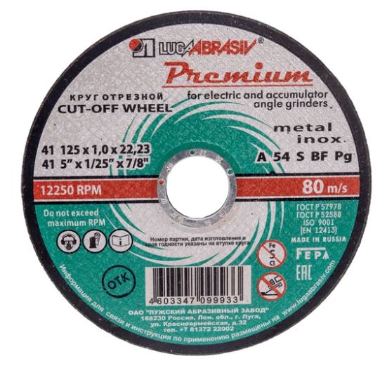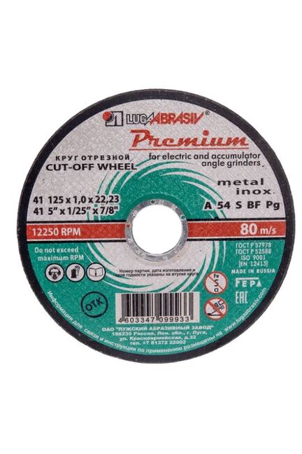 Круг отрезной по металлу и нерж. ЛУГА Premium 125*1,0*22мм