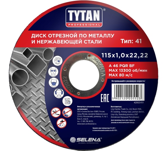 Круг отрезной по металлу и нерж. стали TYTAN Professional 115х1,0х22,22 в Амурск