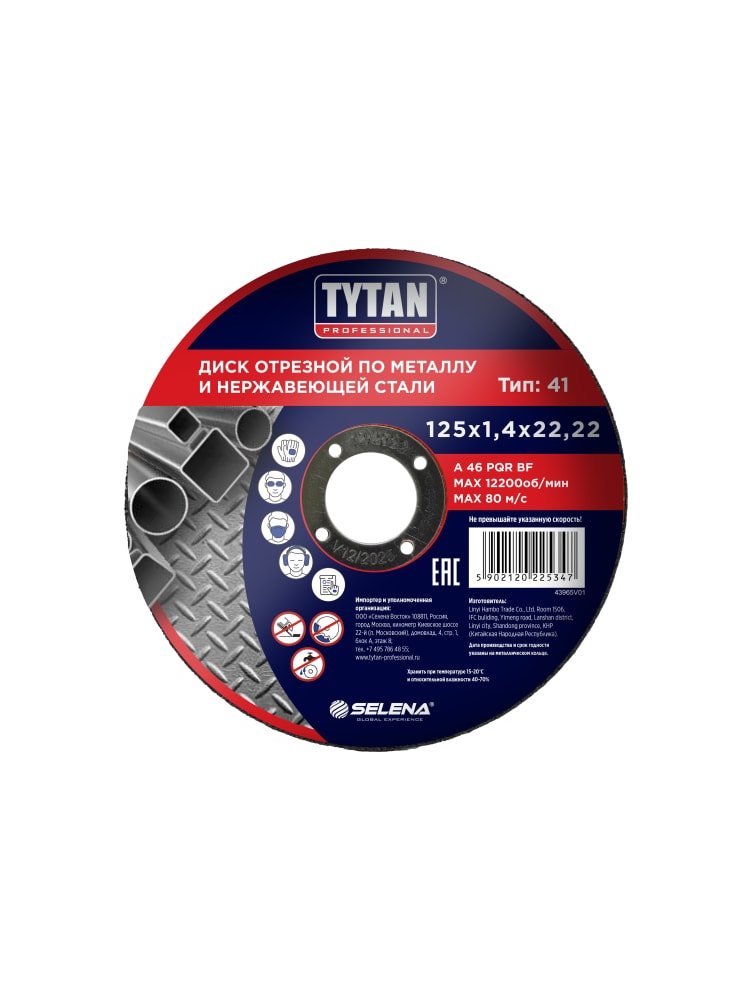 Открывайте для себя высокую производительность и точность резки с отрезным кругом по металлу и нержавеющей стали TYTAN Professional 125x1,4x22,22. Этот инструмент создан для быстрой, чистой и безопасной работы с разнообразными металлическими материалами, включая конструкционную и нержавеющую сталь, арматуру, профильные трубы и листы.