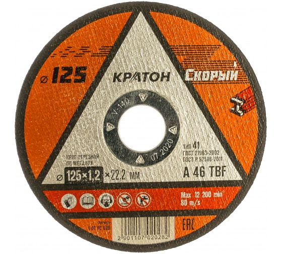 Круг отрезной по металлу КРАТОН "Скорый" 125*1,0*22,2 мм