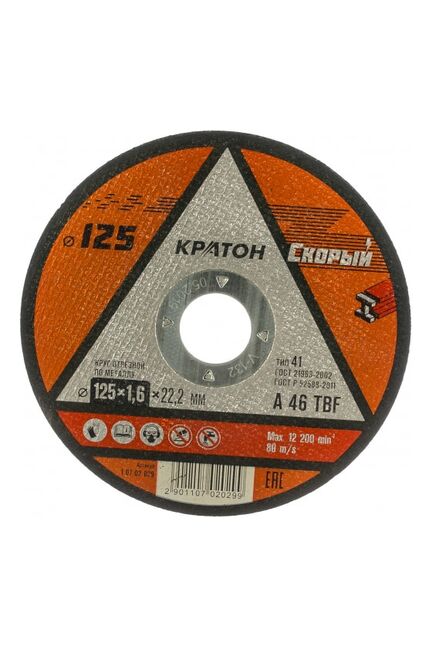 Круг отрезной по металлу КРАТОН "Скорый" 125*1,6*22,2 мм
