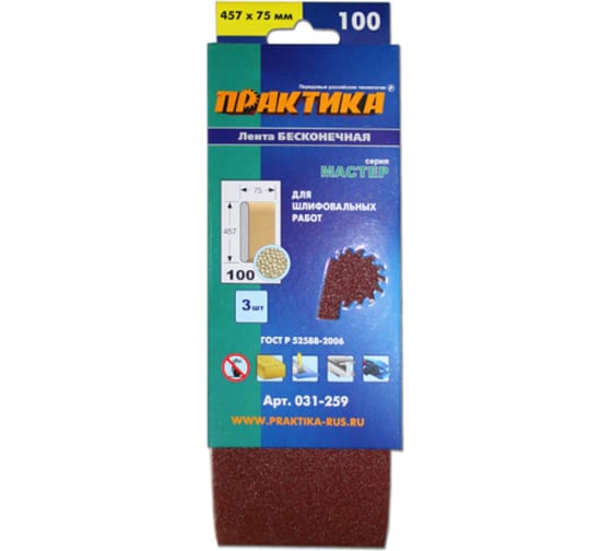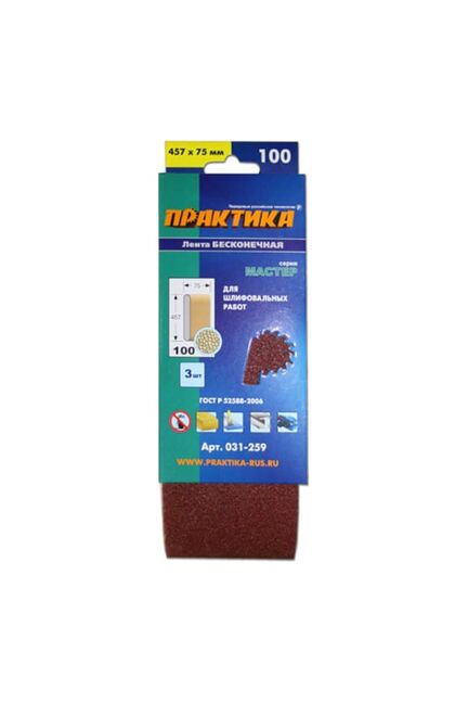 Лента шлифовальная ПРАКТИКА 75*457 мм (P100), 3 шт
