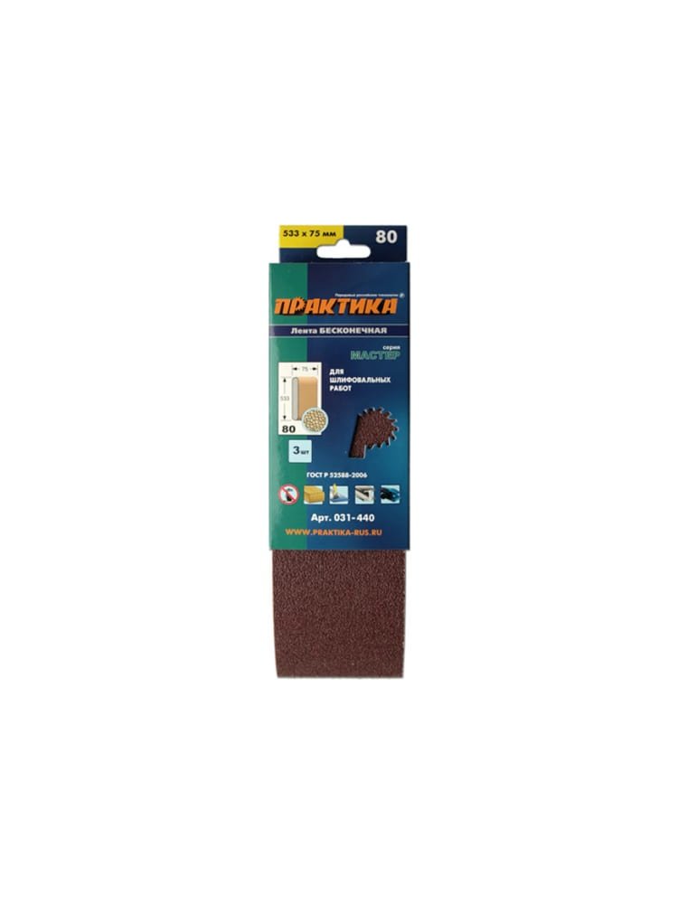Лента шлифовальная ПРАКТИКА 75*533 мм (P80), 3 шт
