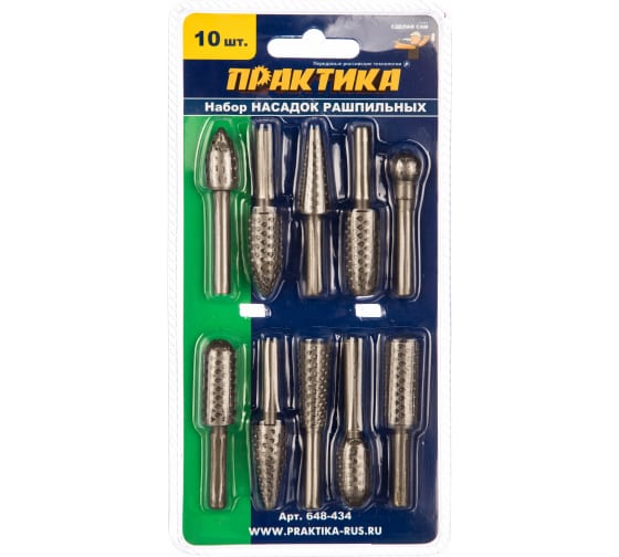 Шарошки по дереву. Серии "Мастер" и "Сделай сам" Насадки рашпильные (шарошки) изготовлены из высокоуглеродистой инструментальной стали, предназначены для обработки дерева, фанеры, ДСП, пластика с помощью высокооборотной дрели. Основное применение - обработка плоских и криволинейных поверхностей, расширения отверстий, снятия фасок и заусенцев. Крупная насечка для высокой производительности работ.