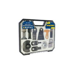Набор насадок №8 ПРАКТИКА используется совместно с многофункциональным инструментом. Применяется при обработке дерева, ДСП, фанеры, пластика, листов ГКЛ, стали, цветных металлов, плитки, камня. Набор включает двенадцать насадок, позволяющих производить различные виды работ: выборка пазов, подрезание внутренних углов, вырезание проемов, резка плинтусов, пластиковых труб и т. д. 15 универсальных насадок в кейсе для МФИ: резка, шлифовка, зачистка дерева, металла, пластика, керамики. Надёжно, удобно, практично.