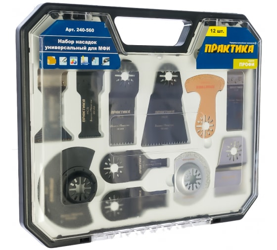 Набор насадок №7 ПРАКТИКА используется совместно с многофункциональным инструментом. Применяется при обработке дерева, ДСП, фанеры, пластика, листов ГКЛ, стали, цветных металлов, плитки, камня. Набор включает двенадцать насадок, позволяющих производить различные виды работ: выборка пазов, подрезание внутренних углов, вырезание проемов, резка плинтусов, пластиковых труб и т. д. 12 универсальных насадок для МФИ: резка, шлифование, зачистка, совместимы с большинством инструментов, пластик кейс для хранения.