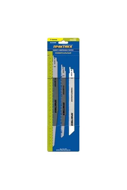 набор пилок комбинированный S1617K/S1531L/S922VF ПРАКТИКА 911-284 предназначен для сабельных пил. Применяется для реза по дереву 40-200 мм и металлу 3-30 мм. В наборе три пилки Универсальный набор из 3 пилок по дереву, металлу и пластику, длины 225–300 мм. Прочное полотно, быстрое и чистое пиление, широкая совместимость.