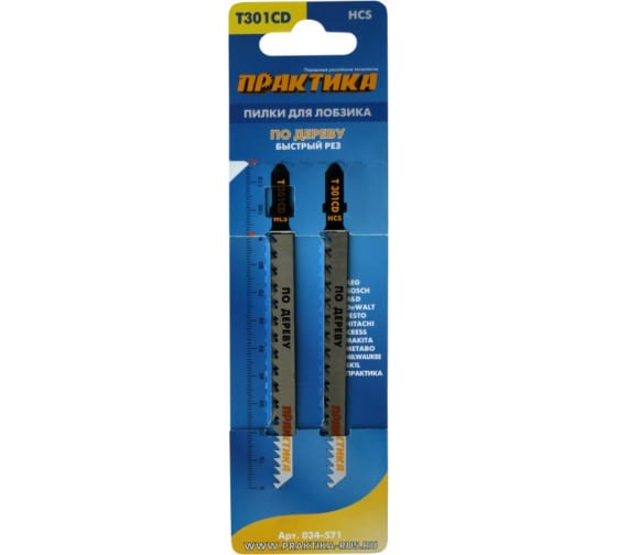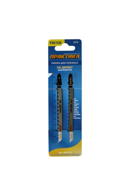 Пилки для лобзика по дереву, ДСП ПРАКТИКА тип T301CD 116х90 мм, быстрый рез, 2шт