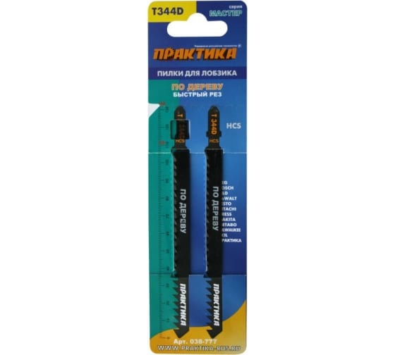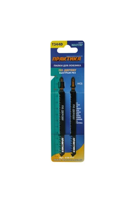 Пилки для лобзика по дереву, ДСП ПРАКТИКА тип T344D 132х110 мм, быстрый рез, 2шт