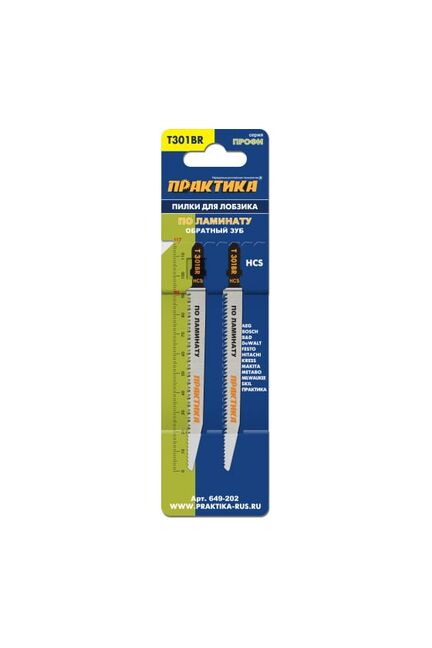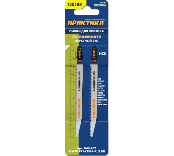 Пилки для лобзика по ламинату ПРАКТИКА дереву, ДСП, тип T301BR 117х91 мм, обратный зуб, HCS, 2шт
