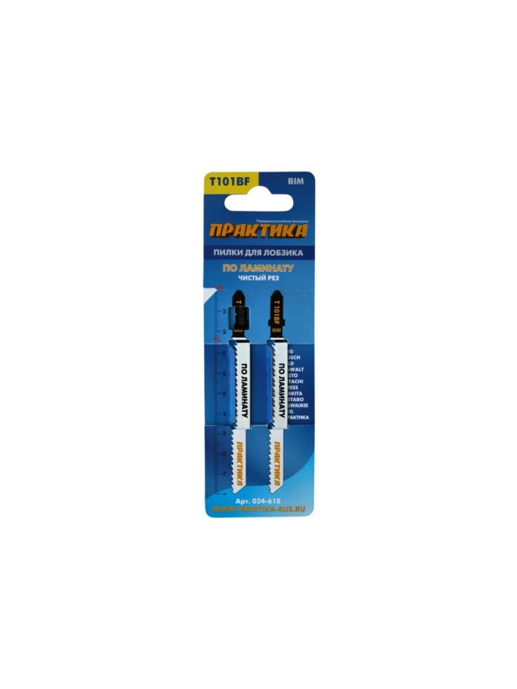 Пилки для лобзика по ламинату ПРАКТИКА тип T101BF 100х75 мм, чистый рез, BIM, 2шт