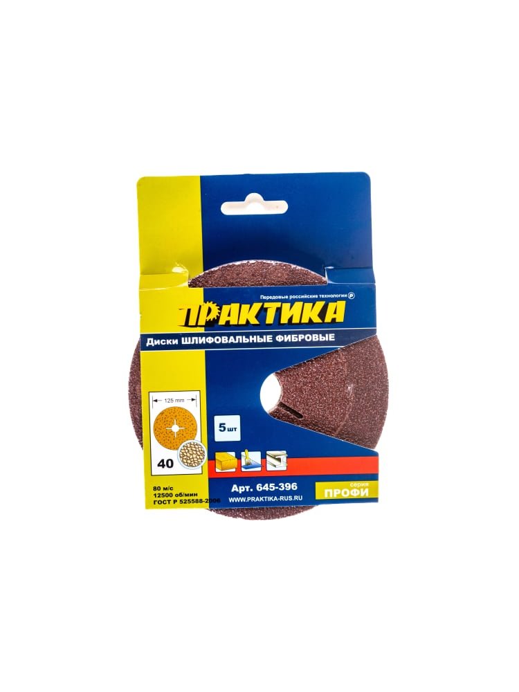 Круги фибровые ПРАКТИКА, гибкие с центральным отверстием, 125 мм (P40), 5 шт в Амурск