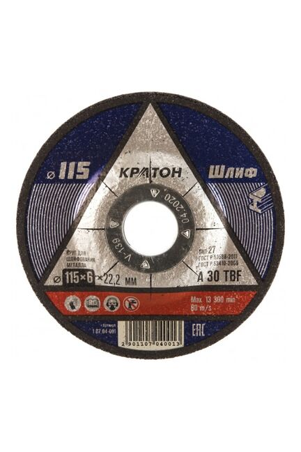 Круг зачистной по металлу КРАТОН, 115*6*22,2мм