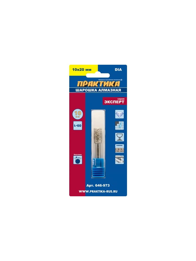- Размер рабочей части 10×20 мм, удобный 6 мм хвостовик подходит для большинства граверов и дрелей.