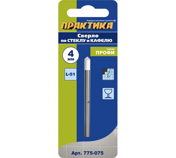 Сверло по кафелю и стеклу ПРАКТИКА 4*51мм в Амурск