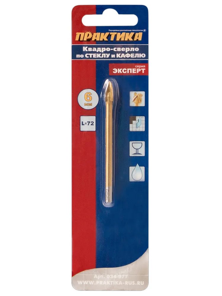 Сверло по стеклу ПРАКТИКА 6х72 мм Квадро"Эксперт"