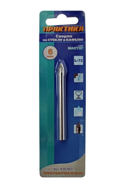 Сверло по стеклу ПРАКТИКА 6х72 мм "Мастер" в Амурск