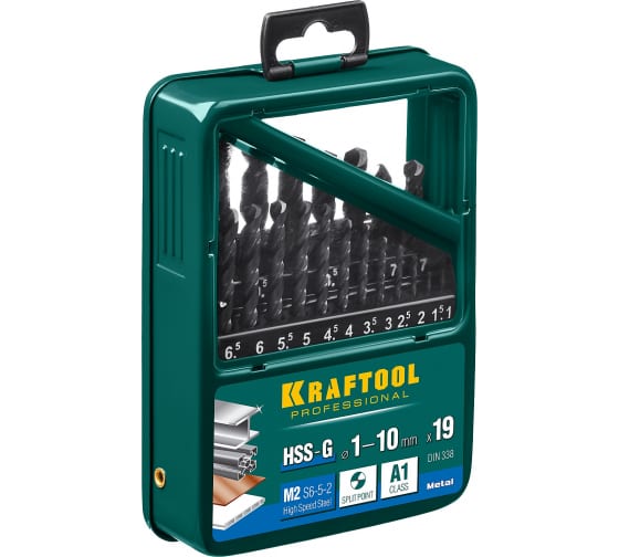 Набор сверл по металлу KRAFTOOL 19шт, 1-10мм