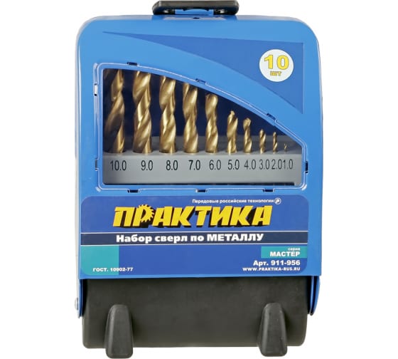 Набор сверл по металлу ПРАКТИКА, 10 шт, 1-10 мм в метал.кассете в Амурск
