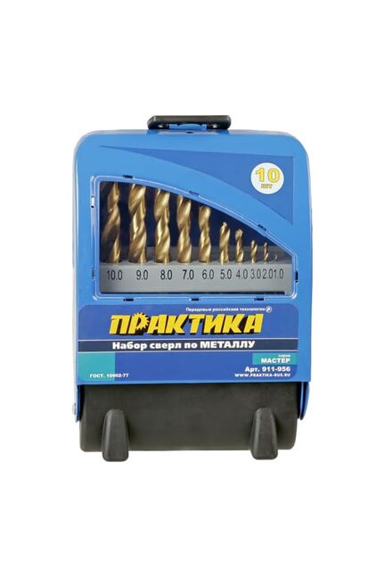 Набор сверл по металлу ПРАКТИКА, 10 шт, 1-10 мм в метал.кассете
