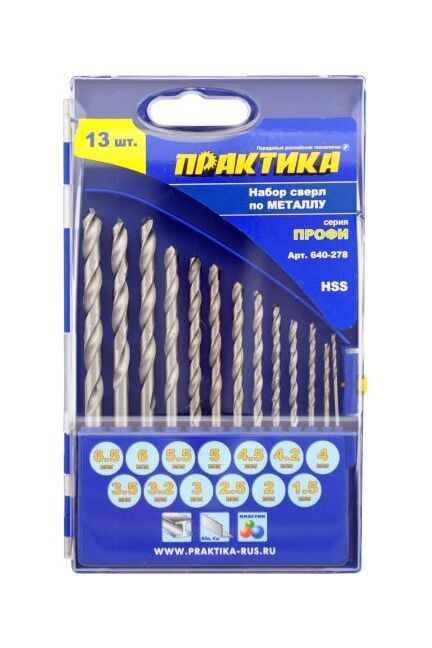 Набор сверл по металлу ПРАКТИКА, быстрорежущая сталь, 13 предметов