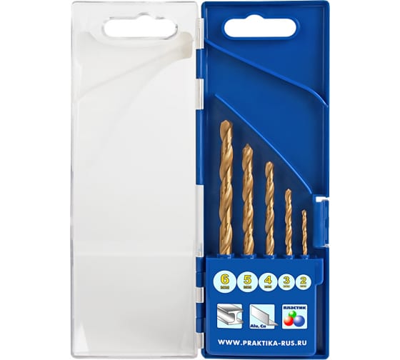 Набор сверл по металлу ПРАКТИКА "Профи" 2/3/4/5/6 мм, нитрид титана, 5 шт в Амурск
