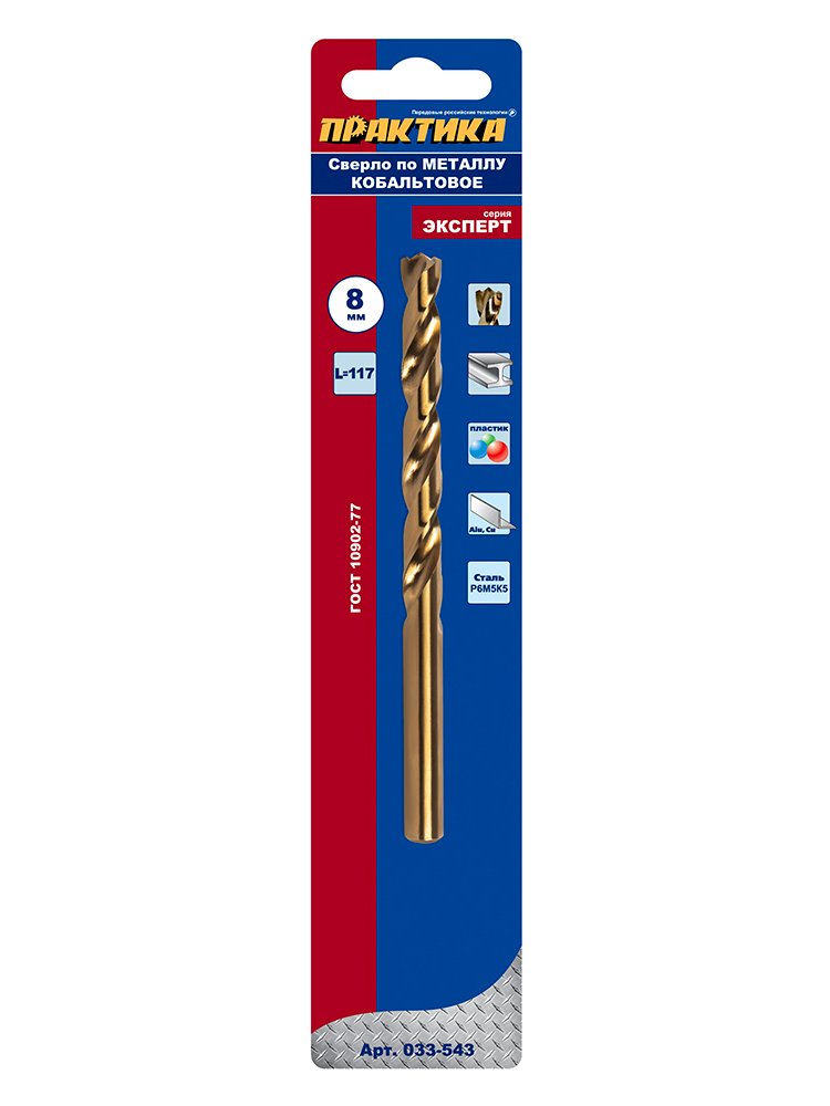 Сверло по металлу ПРАКТИКА кобальтовое 8,0х117 мм