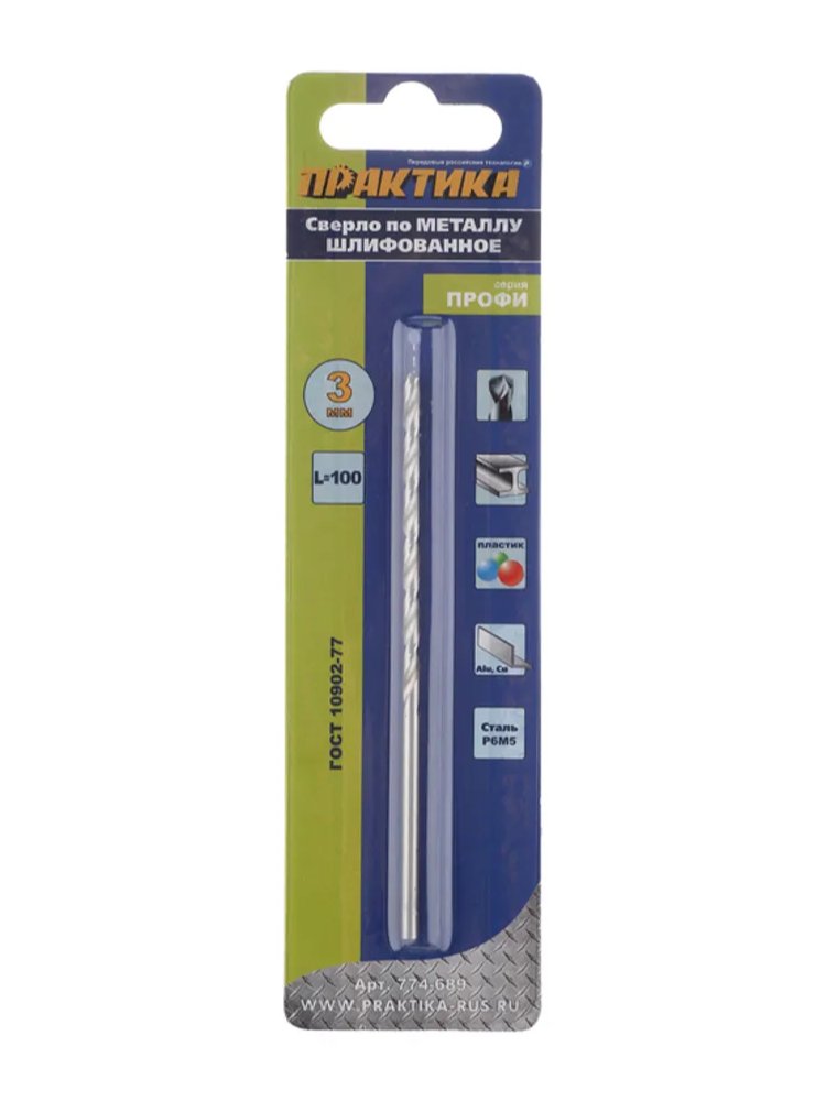 Сверло по металлу ПРАКТИКА удлиненное 3,0*100мм
