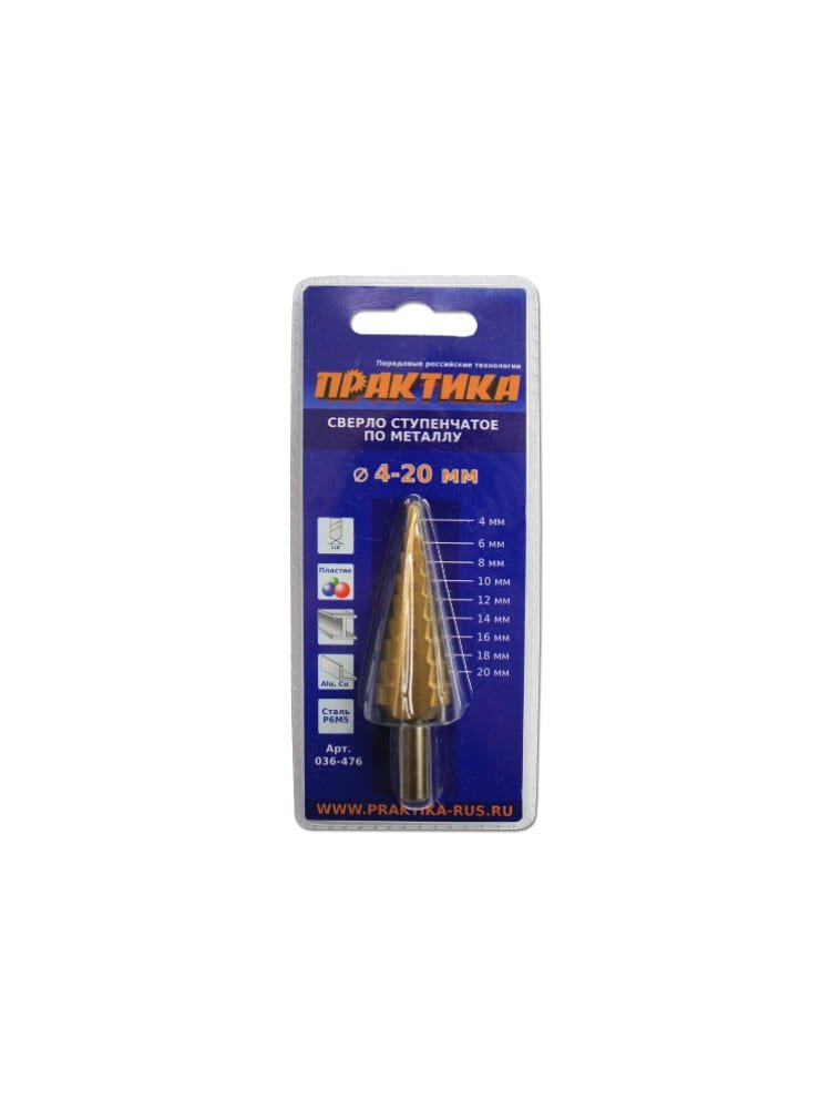 Сверло по металлу ступенчатое ПРАКТИКА 4-20 мм шаг 2 мм