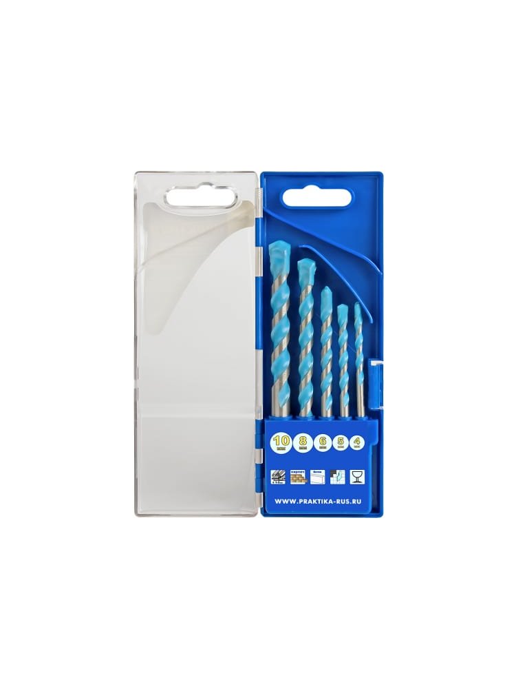 Набор сверл универсальных ПРАКТИКА "Эксперт" 4/5/6/8/10 мм, 5 шт в Амурск