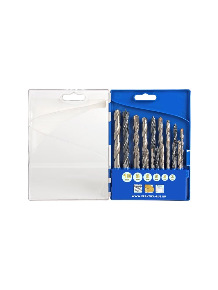 Набор сверл комбинированный ПРАКТИКА "Профи" 3/4/5/6/8/10 мм, металлу/бетону/дереву, 18 шт