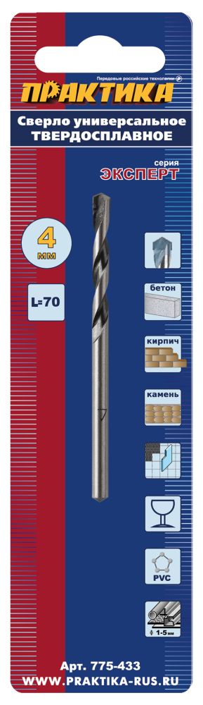 Сверло универсальное ПРАКТИКА 4*70мм