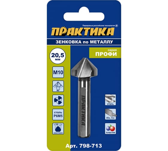 Зенковка по металлу ПРАКТИКА 20.5*63 мм, 90 град., под резьбу М10 в Амурск