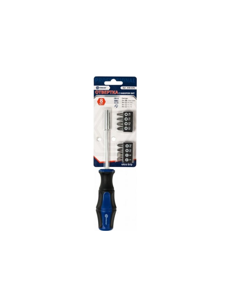 - Состав набора: отвертка-рукоятка с эргономичным прорезиненным покрытием для уверенного хвата и 8 популярных сменных бит (SL, PH, PZ, TORX), устойчивых к износу.