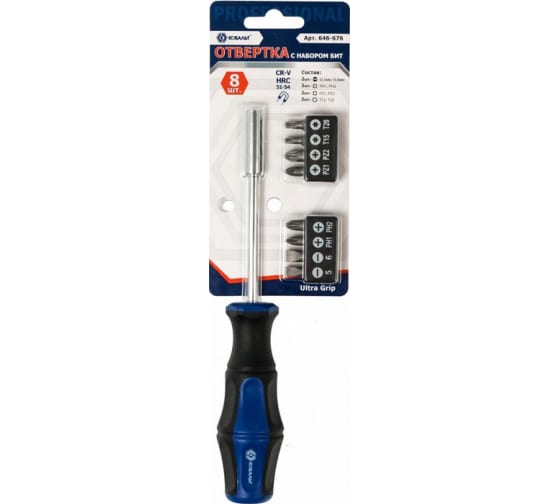 Набор 9 шт,Отвертка рукоятка КОБАЛЬТ Ultra Grip с набором бит