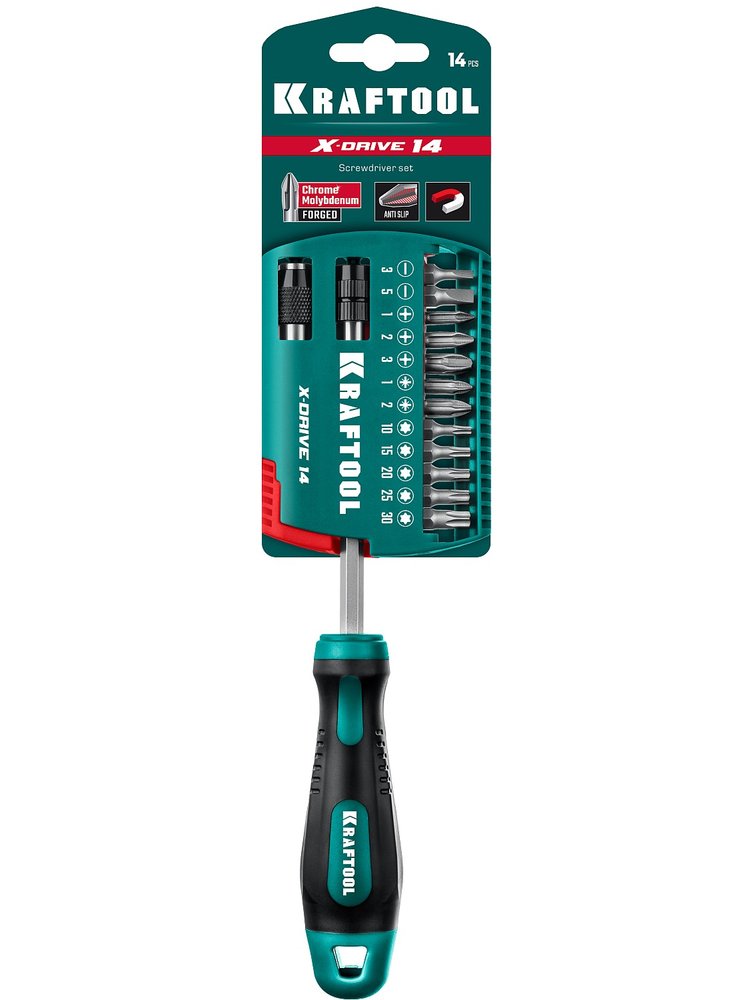 - В комплекте 14 предметов: битодержатель и биты (SL, PH, PZ, TORX, HEX)