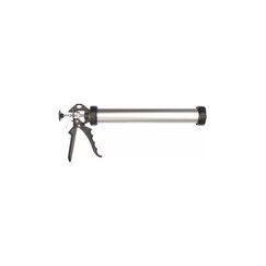 Полукорпусный, усиленный. Материал: корпус и рукоятка - алюминиевый сплав; скелет (2 жестких ребра) - окрашенная сталь; шток - никелированная сталь; пластик. Применение: используется для плавного выдавливания герметиков из тубы объемом 320 мл при нанесении на поверхность для герметизации различных швов и отверстий. Преимущества: для удобства работы возможен поворот на 360°, точная дозировка. Полукорпусная конструкция, поворот ствола 360°, объем 320 мл, обеспечивает точное и удобное нанесение герметика даже в труднодоступных местах.