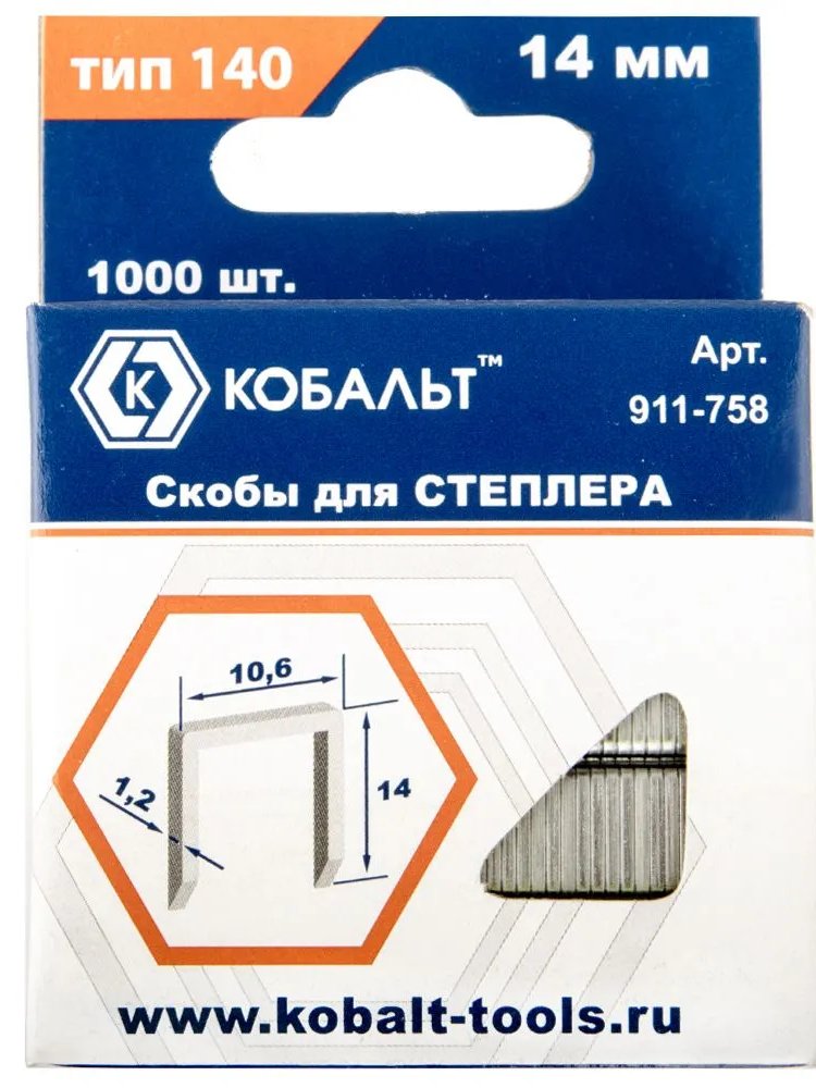 Скобы КОБАЛЬТ предназначены для степлеров. Применяются для скрепления между собой различных материалов. Универсальные скобы тип 140, 14 мм, DP-заточка, 1000 шт., для прочного крепления материалов в строительстве и ремонте, сталь с антикоррозийным покрытием.