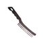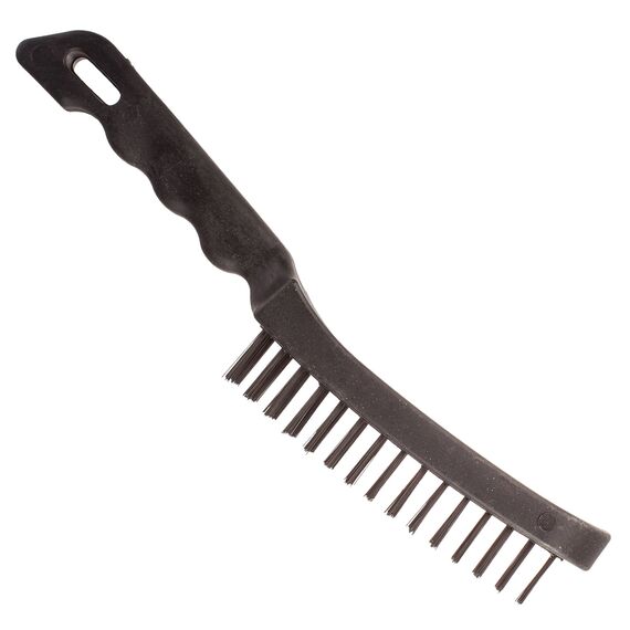 Щетина изготовлена из стальной проволоки. Корпус цельнопластиковый с эргономичной рукояткой. Длина щетки 260 мм. Толщина проволоки 0,33 мм. Длина проволоки 20 мм Материал изготовления: сталь, пластик Назначение: для зачистки различных поверхностей от грязи, ржавчины, удаления старой краски и лака Прочная щетка с пластиковым корпусом и 6 рядами проволоки — для быстрой очистки от ржавчины, краски и загрязнений без утомления рук.