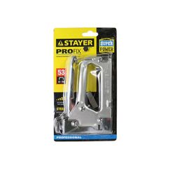 Неразборный корпус из прочных пластиковых деталей, с витой пружиной. Металлическая рукоятка, имеет предохранитель для удобства и безопасности пользователя. Оснащен удобными механизмами для быстрой замены скоб и для легкого нажима рукоятки при забивании скобы. В корпусе имеется окошко-индикатор для контроля остатка скоб. Материал: сталь, пластик Назначение: Строительный степлер — инструмент для крепления скобами различных материалов к деревянному основанию путём их прибивания. В отличие от офисного степлера, скоба строительного степлера не пробивает материал насквозь и ее концы не загибаются. Компактный степлер для скоб №53 (4–8 мм) гарантирует надёжную фиксацию материалов при ремонте и отделке. Прочный, удобный и долговечный.