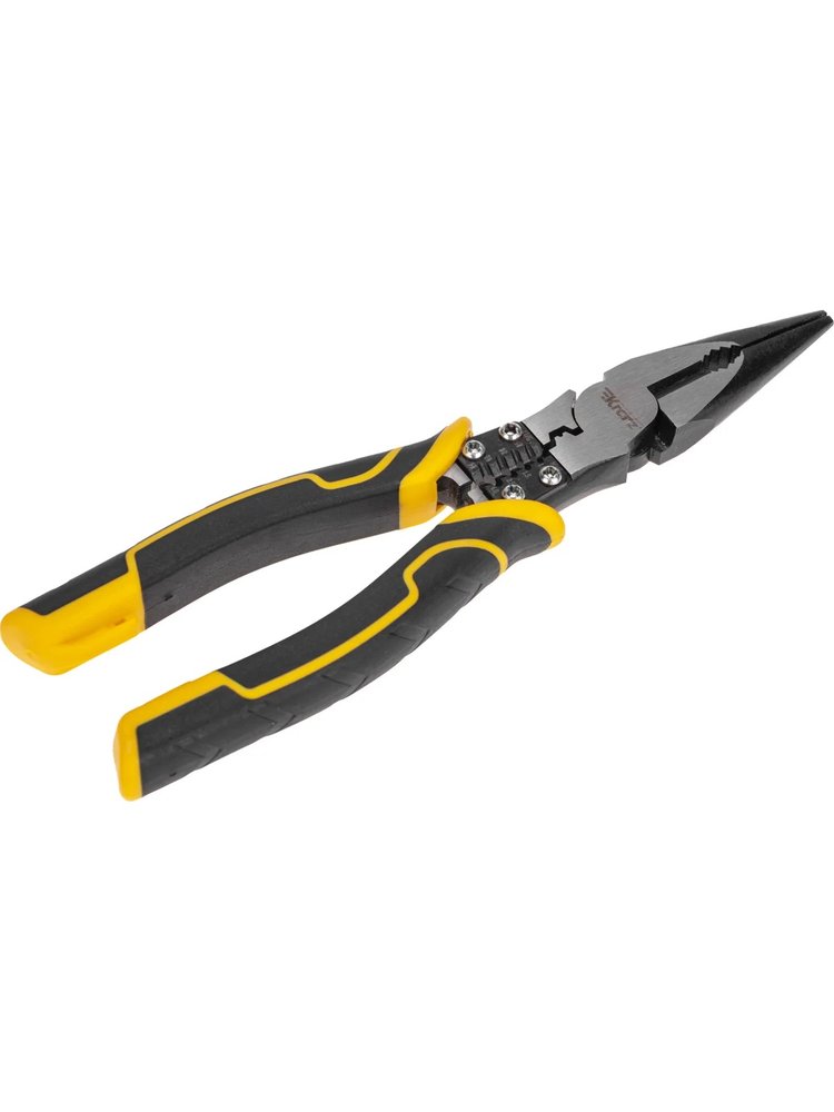 Многофункциональные тонкогубцы 200 мм: для точных монтажных, электротехнических и ремонтных работ, с эргономичными рукоятками и усиленной сталью.
